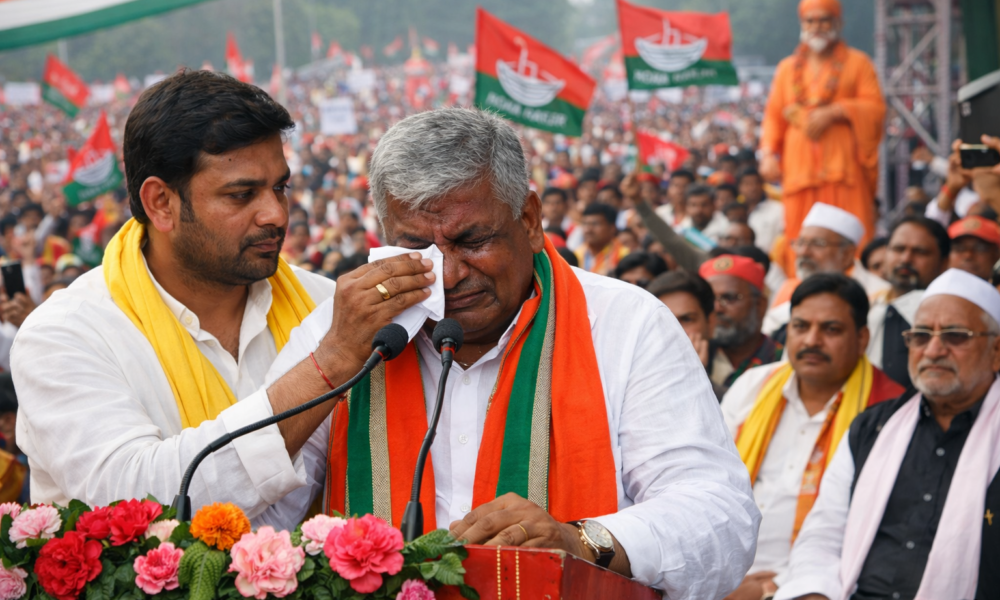 उत्तर प्रदेश के गोरखपुर में निषाद पार्टी की महारैली के दौरान कैबिनेट मंत्री डॉ. संजय निषाद मंच पर भाषण देते हुए भावुक हो गए और आंसुओं...