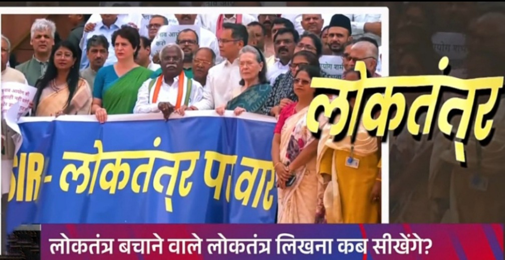 • संसद परिसर में आयोजित लोकतंत्र बचाओ आंदोलन के बैनर पर स्पेलिंग मिस्टेक ने राजनीतिक सामाजिक भाषाई क्षेत्रों में नई बहस छिड़ी • जब कोई शब्द...