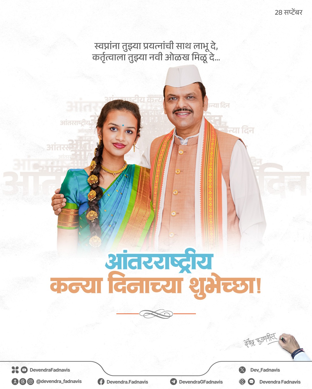 फडणवीस का यह संदेश भारत में कन्याओं के सशक्तिकरण और लैंगिक समानता को बढ़ावा देने की दिशा में एक कदम माना जा रहा है। यह पोस्ट राष्ट्रीय ‘बेटी बचाओ, बेटी पढ़ाओ’ अभियान के साथ मेल खाती है।