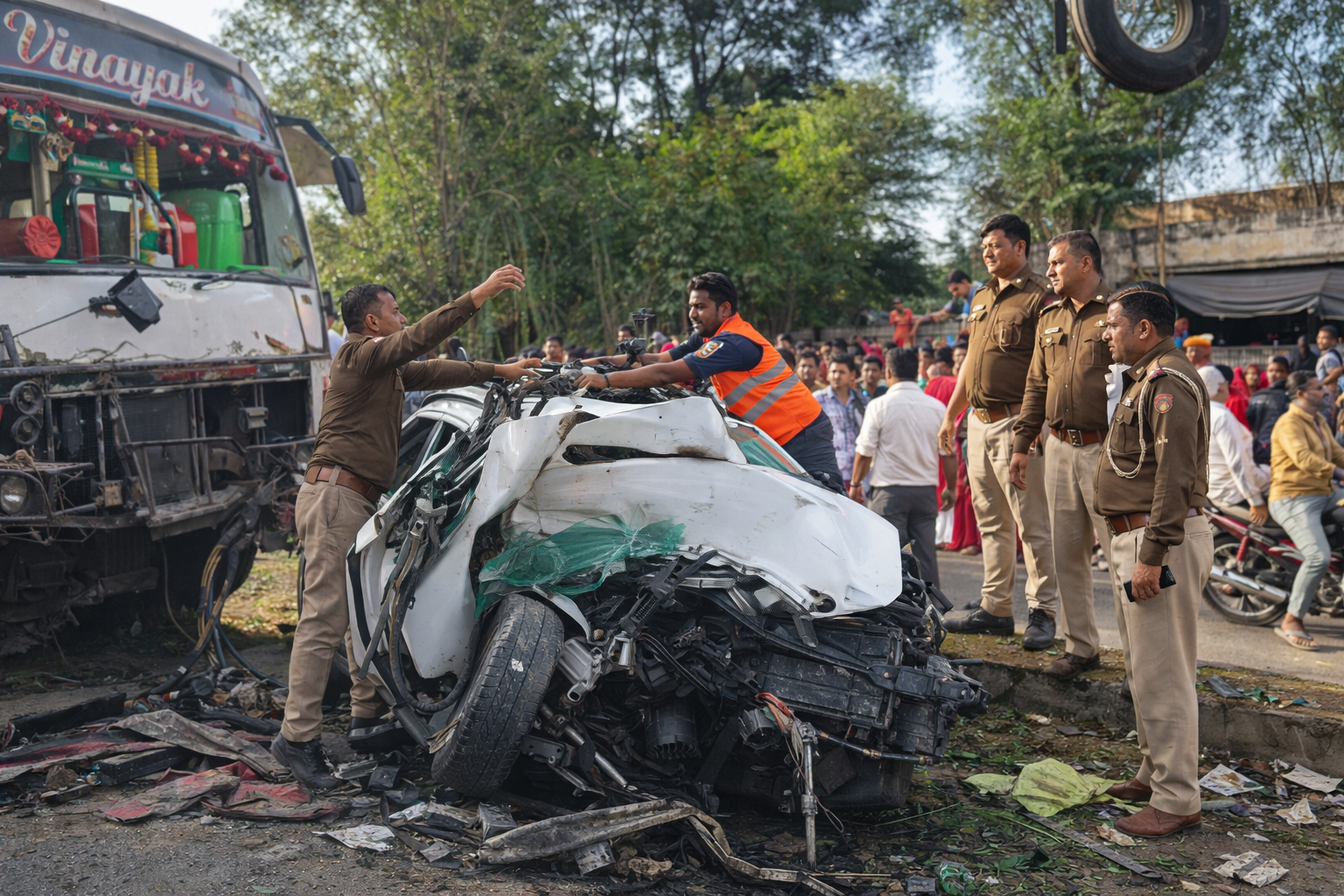 प्राथमिक जानकारी के अनुसार, कार तेज गति से दौसा की ओर जा रही थी। बास्सी के पास अचानक कार अनियंत्रित हो गई और सामने से आ रही बस से भिड़ गई। टक्कर इतनी भीषण थी कि कार का अगला हिस्सा पूरी तरह क्षतिग्रस्त हो गया।