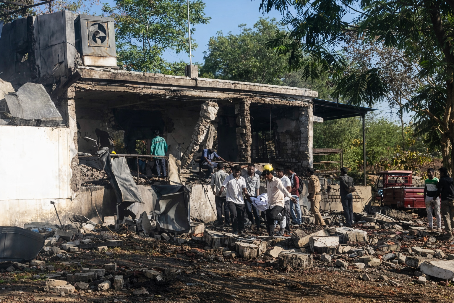 अग्निशमन दलाने काही तासांच्या प्रयत्नांनंतर आग आटोक्यात आणली. ढिगाऱ्याखाली अडकलेल्या कामगारांना बाहेर काढण्यासाठी स्थानिक प्रशासन, पोलिस आणि स्वयंसेवकांनी संयुक्त मोहीम राबवली. गंभीर जखमींना आयसीयूमध्ये हलवण्यात आले आहे.