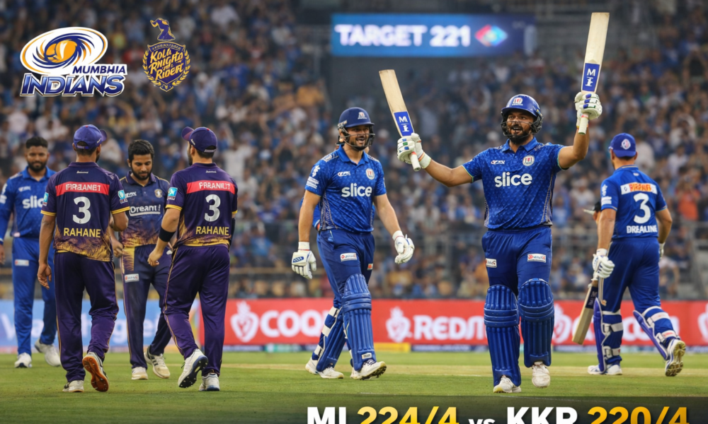मुंबई इंडियंस ने IPL 2026 के दूसरे मैच में कोलकाता नाइट राइडर्स को वानखेड़े स्टेडियम में 6 विकेट से हरा...